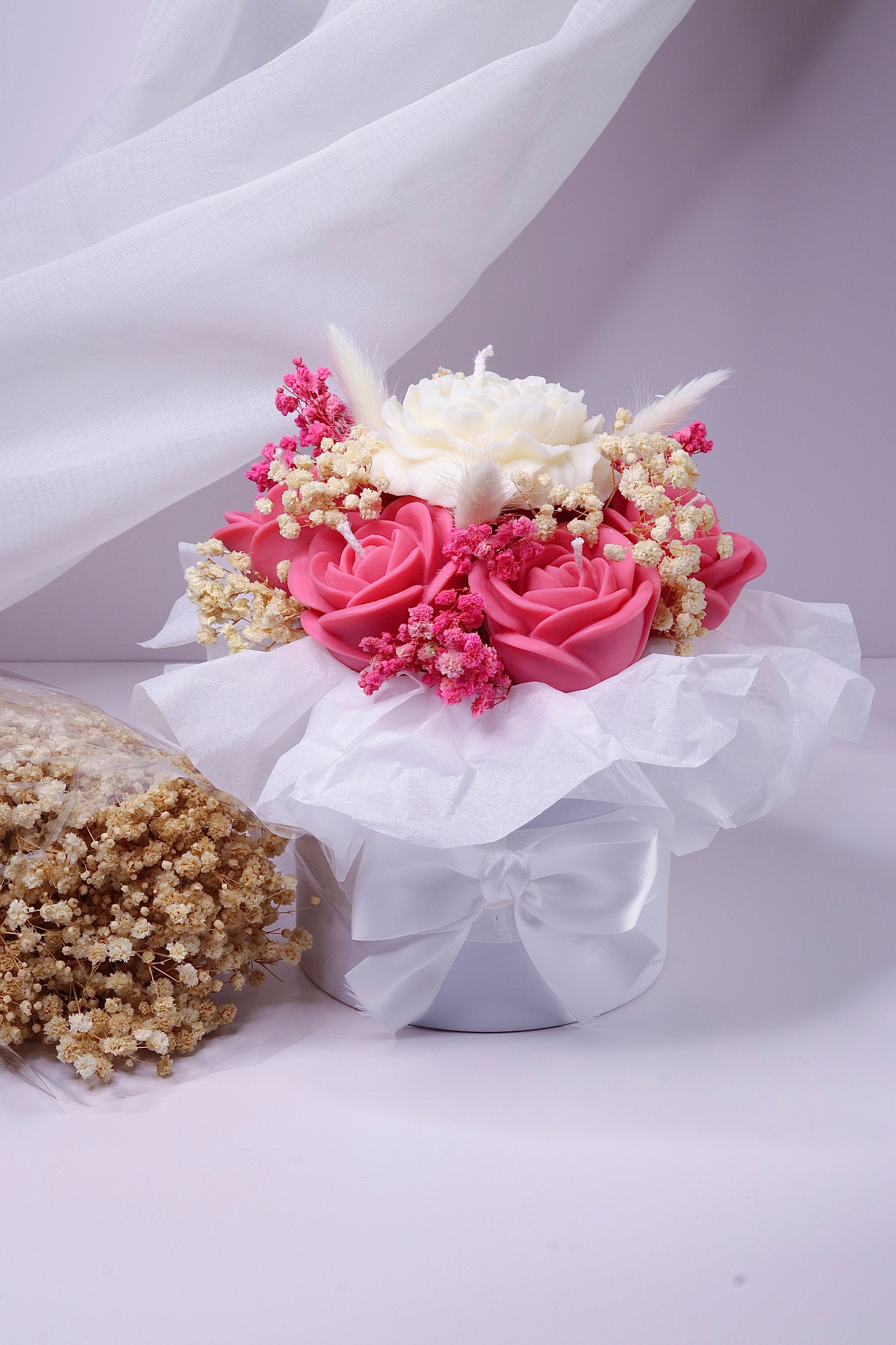 Plongez dans un univers de douceur avec ce bouquet de fleurs en cire , une pièce élégante et délicate qui marie l'art de la bougie et la beauté des fleurs. 🌹