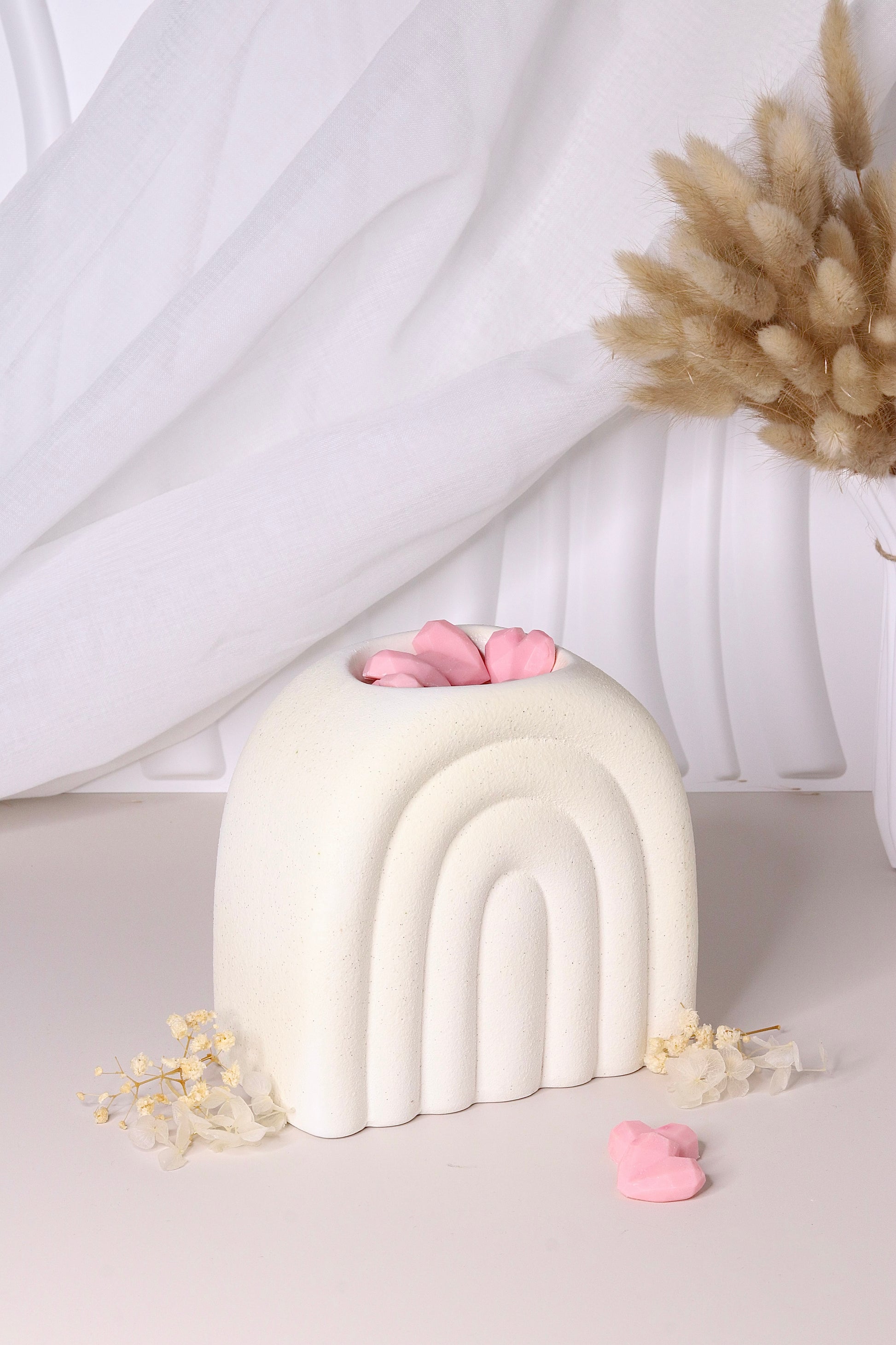 Découvrez le brûle-parfum ARCHE, une création raffinée au design inspiré par l’élégance des formes architecturales. Avec ses lignes épurées et son allure minimaliste, il s’intègre parfaitement dans tout type de décoration. Conçu pour diffuser vos cires parfumées, ce brûle-parfum vous invite à créer une ambiance apaisante et chaleureuse. Un véritable objet de décoration qui allie style et fonctionnalité !