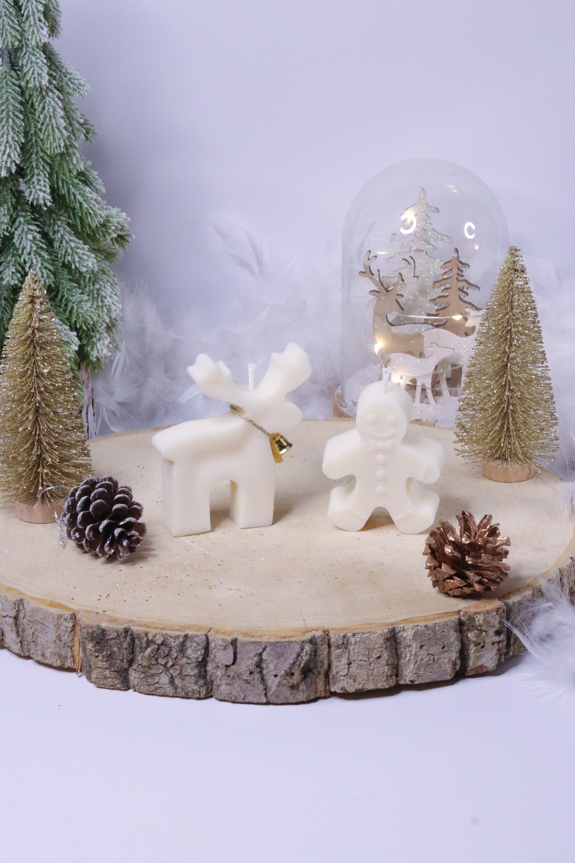 Ce coffret réunit deux de mes bougies sculpturales les plus craquantes : le petit Renne et le Bonhomme Pain d’Épices.